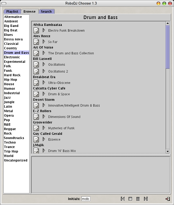 Browsing and playing: editing the playlist, browsing the repository, searching the repository.