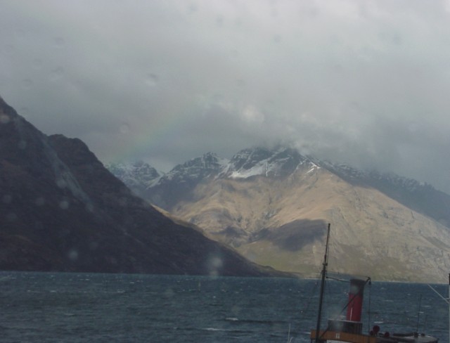 Out the window of our hotel room there was a nice little harbor with cute little boats and nice dramatic mountains rising in the background. Oh and they threw in another rainbow for good measure.